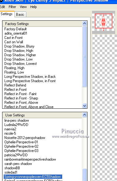 Metti i preset Spring e spring1-yvonnepsplessen nella cartella del filtro Alien Skin Eye Candy 5 Impact>Settings>Shadow.