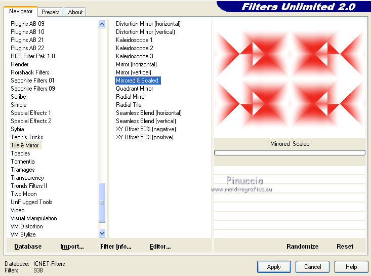 Effetti>Plugins>Filters Unlimited 2.0 - Tile&Mirror - @Mirrored&Scaled.
