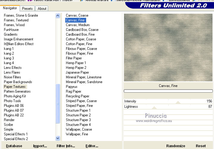 4. Effetti>Plugins>Filters Unlimited 2.0 - Paper Texture - Canvas fine, con i settaggi standard.