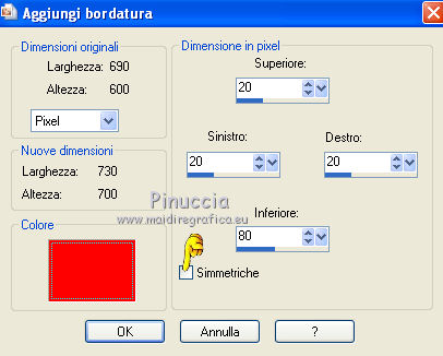 21. Immagine>Aggiungi bordatura, simmetriche non selezionato, con un colore contrastante, e i seguenti settaggi: