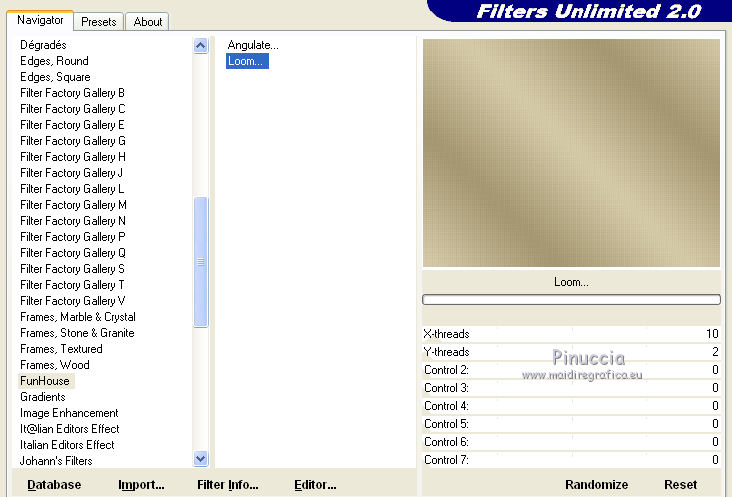 3. Effetti>Plugins>Filters Unlimited 2.0 - Funhouse - Loom, con i settaggi standard.