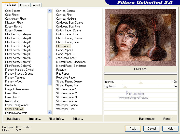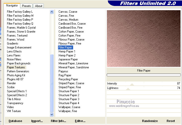 17. Effetti>Plugins>Filters Unlimited 2.0 - Paper Textures - Filter paper, con i settaggi standard.