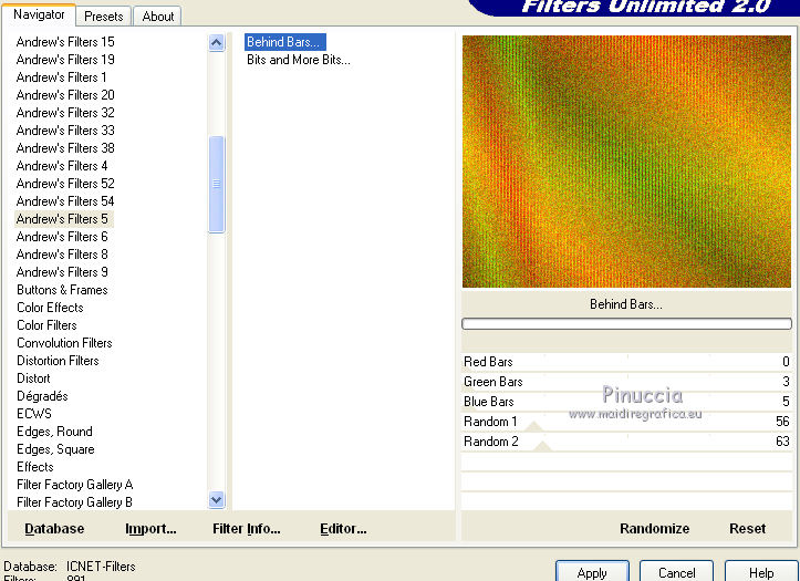3. Effetti>Plugins>Filters Unlimited - Andrew's Filter 5 - Behind bars.