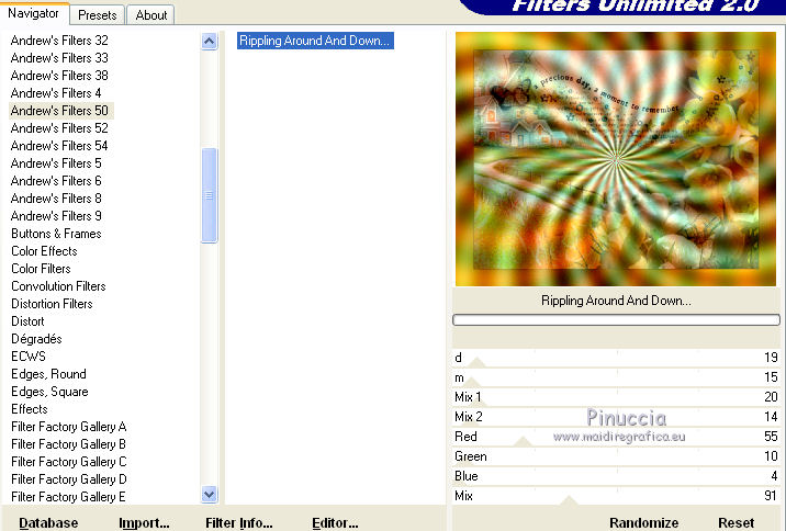 15. Effetti>Plugins>Filters Unlimited 2.0 - Andrew's Filter 50 - Rippling round and down.