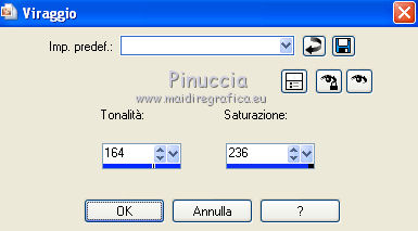 Regola>Tonalità e saturazione>Viraggio, con i settaggi precedenti.