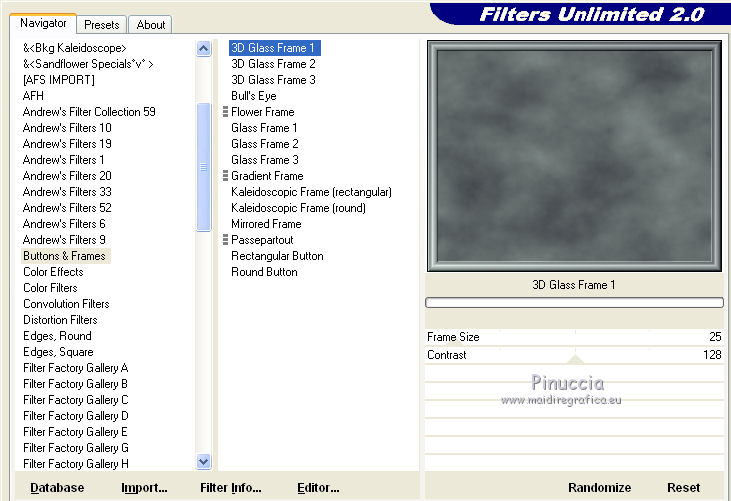 17. Effetti>Plugins>Filters Unlimited 2.0 - Buttons and Frames - 3D Glass Frame 1.