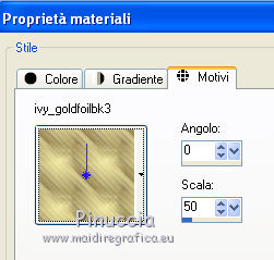 19. Passa il colore di sfondo a Motivi e seleziona un motivo oro a tua scelta, con i seguenti settaggi.