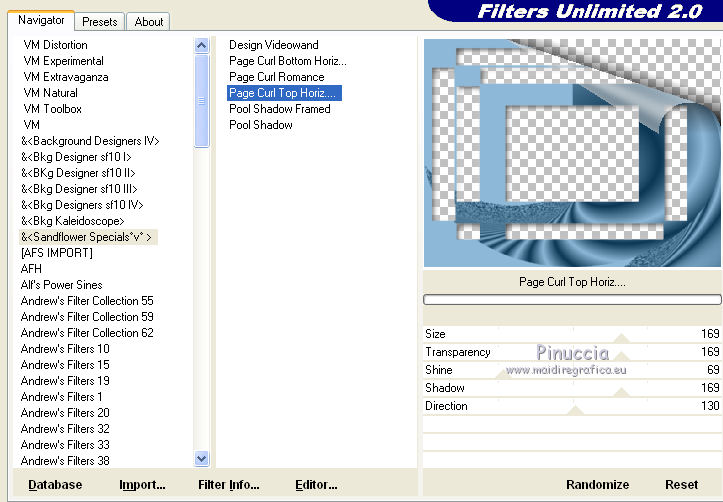 10. Effetti>Plugins>Filters Unlimited - Sandflowers special - Page crul top horizontal con i settaggi standard.