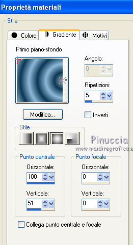 6. Cambia lo stile del gradiente a Sprazzo di luce, con i seguenti settaggi.