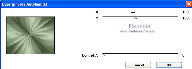 3. Effetti>Plugins>Tronds Filters - Lyserginsyredietylamid3, con i seguenti settaggi.