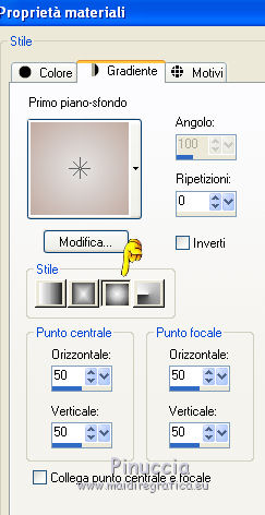 Passa il colore di primo piano a Gradiente, con i seguenti settaggi.