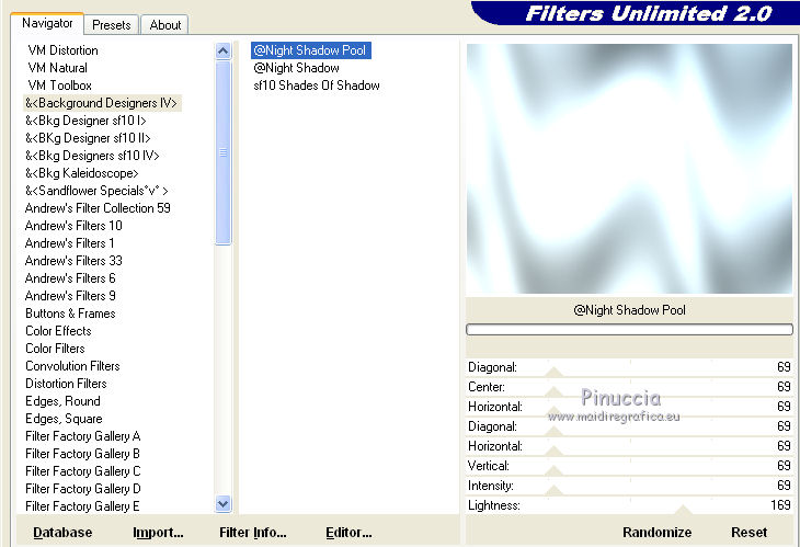 24. Effetti>Plugins>Filters Unlimited 2.0 - Background designer IV - Night shadow Pool, con i settaggi standard.