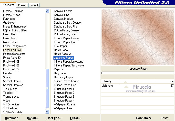 16. Effetti>Plugins>Filters Unlimited 2.0 - Paper Textures - Japanese paper, con i settaggi standard.