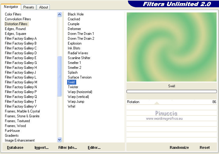 4. Effetti>Plugins>Distorsion Filters - Swirl, con i settaggi standard.