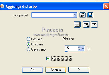 22. Regola>Aggiungi/Rimuovi disturbo>Aggiungi disturbo, con i settaggi precedenti.