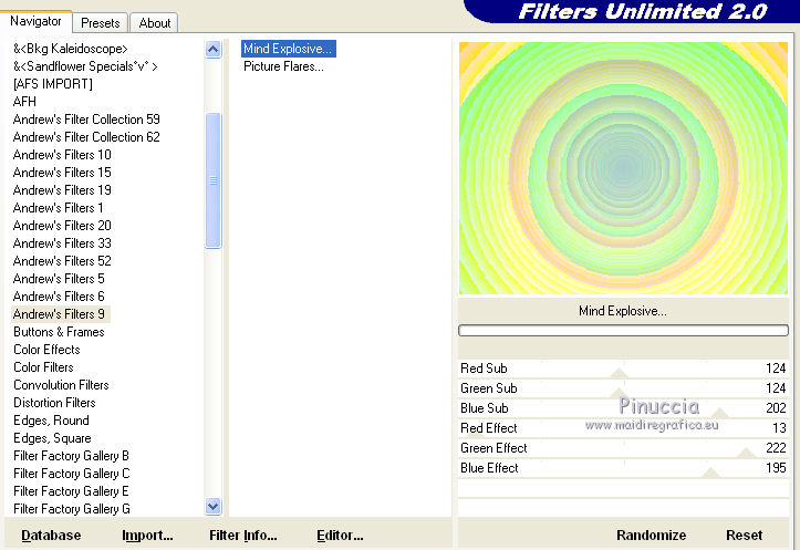 3. Effetti>Plugins>Filters Unlimited 2.0 - Andrew's Filter 9 - Mind Explosive.