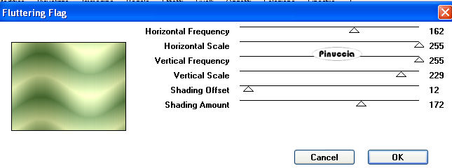 5. Effetti>Plugins>Filter Factory Gallery B - Fluttering Flag, con i settaggi standard:
