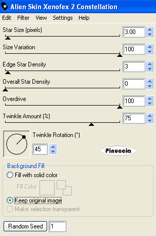 Ripeti l'Effetto Constellation, con gli stessi settaggi, ma cliccando una volta su Random Seed.