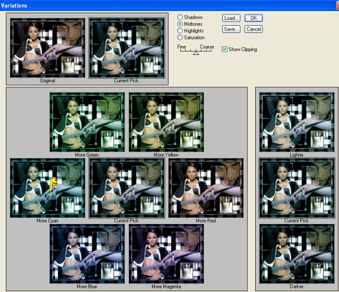 24. Effetti>Plugins>Adjust - Variations, 1 clic su More Cyan e ok.