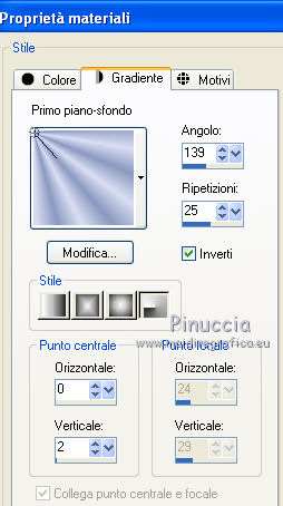Passa il colore di primo piano a Gradiente, con i seguenti settaggi.
