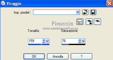 18. Regola>Tonalità e saturazione>Viraggio, con i settaggi precedenti.