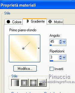 Passa il colore di primo piano a Gradiente, stile Lineare, con i seguenti settaggi.