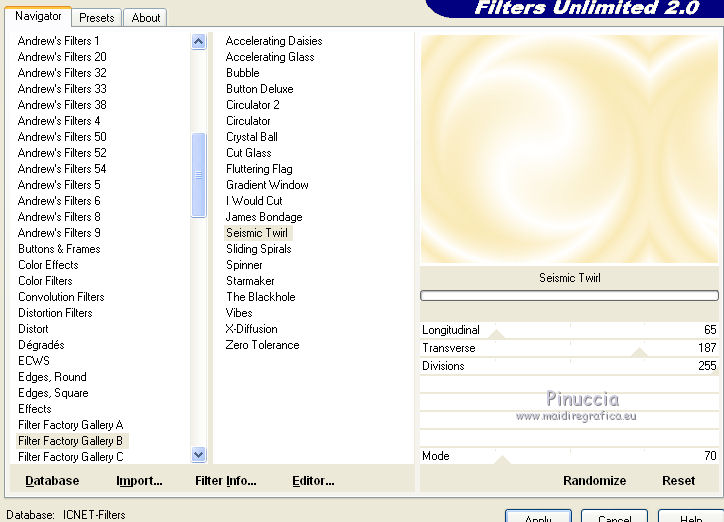 3. Effetti>Plugins>Filters Unlimited - Filter Factory Gallery B - Seismis Twirl.