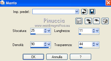 26. Effetti>Effetti di trama>Manto, con i settaggi precedenti.