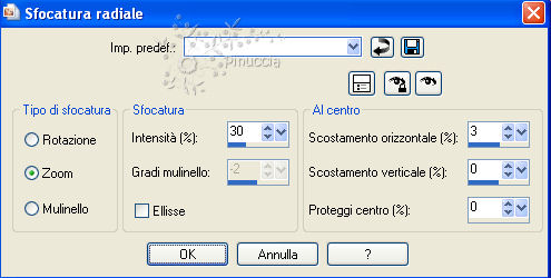 qui puoi trovare qualche risposta ai tuoi dubbi. Se l'argomento che ti interessa non è presente, ti prego di segnalarmelo. Questo tutorial è stato creato con PSP X2, ma può essere eseguito anche con le altre versioni di PSP. Per tradurlo, ho usato PSP X. Occorrente: Materiale qui I tubes sono di EmersonRose, Katussia, Marif, Colombe. Grazie a tutti i creatori di tubes per le loro immagini. Lascia intatto il nome del tube. Il © appartiene all'artista originale. Mantieni il credito di chi ha creato il tube. Filtri: DC Special qui 1. Apri una nuova immagine trasparente 650 x 500 pixels. 2. Imposta il colore di primo piano con #c61611, e il colore di sfondo con il nero #000000. 3. Passa il colore di primo piano a Gradiente lineare. ![]() 4. Riempi l'immagine trasparente con il gradiente.5. Effetti>Plugins>DC Special - Tweek. ![]() 6. Apri il tube katussia_bLv0712 e vai a Modifica>Copia. Torna al tuo lavoro e vai a Modifica>Incolla come nuovo livello. Immagine>Rifletti. Sposta il tube in alto a destra.7. Cambia la modalità di miscelatura di questo livello in Luminanza, e abbassa l'opacità all'80%. 8. Apri il tube smok-colombe e vai a Modifica>Copia. Torna al tuo lavoro e vai a Modifica>Incolla come nuovo livello. Immagine>Rifletti. Sposta il tube a sinistra.9. Cambia la modalità di miscelatura di questo livello in Luminanza (esistente), e abbassa l'opacità al 60%. 10. Apri il tube Marif_2007_Juilet_misteds_voiture05 e vai a Modifica>Copia. Torna al tuo lavoro e vai a Modifica>Incolla come nuovo livello. Sposta il tube nell'angolo in basso a sinistra.11. Cambia la modalità di miscelatura di questo livello in Luminanza, e abbassa l'opacità al 70%. 12. Apri il tube "JenniferLopez-JohnGalliano-dir-EmersonRose" e vai a Modifica>Copia. Torna al tuo lavoro e vai a Modifica>Incolla come nuovo livello. Immagine>Ridimensiona, al 60%, tutti i livelli non selezionato. 13. Livelli>Duplica. Effetti>Effetti di distorsione>Vento - da destra, intensità 90. ![]() 14. Regola>Sfocatura>Sfocatura radiale. ![]() 15. Livelli>Disponi>Sposta giù. 16. Attiva il livello superiore. Effetti>Effetti 3D>Sfalsa ombra, con il colore #e7504c. ![]() 17. Livelli>Unisci>Unisci giù. 18. Attiva lo strumento Testo , seleziona il font TKDDoodle,Scrivi il tuo testo e posizionalo. Livelli>Converti in livello raster. 19. Aggiungi il tuo nome e/o il tuo watermark su un nuovo livello. 20. Immagine>Aggiungi bordatura, 2 pixels, simmetriche, con il colore nero. Immagine>Aggiungi bordatura, 6 pixels, simmetriche, con il colore rosso. Immagine>Aggiungi bordatura, 2 pixels, simmetriche, con il colore nero. 21. Immagine>Ridimensiona, a 650 pixels di larghezza, tutti i livelli selezionato. Hai finito. Puoi salvare in formato jpg. ![]() Se hai problemi o dubbi, o trovi un link non funzionante, o anche soltanto per un saluto, scrivimi. |