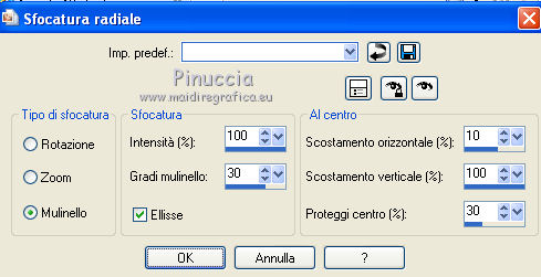 18. Regola>Sfocatura>Sfocatura radiale, con i settaggi precedenti.