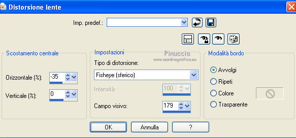 10. Effetti>Effetti di distorsione>Distorsione lente, 2 volte con i seguenti settaggi.