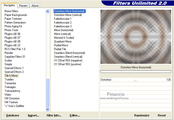 10. Effetti>Plugins>Filters Unlimited 2.0 - Tile & Mirror - Distortion Mirror(horizontal), con i settaggi standard.