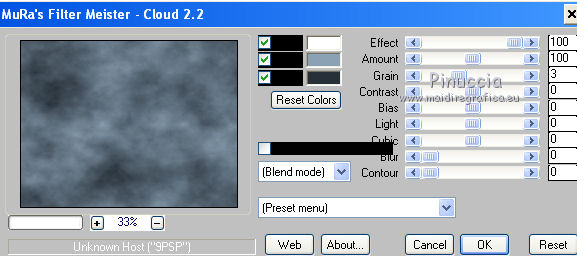 13. Effetti>Plugins>Mura's Meister - Cloud, con i settaggi standard.