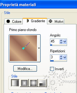 qui puoi trovare qualche risposta ai tuoi dubbi. Se l'argomento che ti interessa non è presente, ti prego di segnalarmelo. Questo tutorial è stato creato con PSP X2, ma può essere eseguito anche con le altre versioni di PSP. Per tradurlo, ho usato PSP X. Occorrente: Materiale qui I tubes sono Hanni, Sdh, Sassi. Grazie a tutti i creatori di tubes per le loro immagini. Lascia intatto il nome del tube. Il © appartiene all'artista originale. Mantieni il credito di chi ha creato il tube. Filtri: Xero - Porcelain qui Graphics Plus - Cross Shadow qui 1. Apri una nuova immagine trasparente 650 x 450 pixels. 2. Selezione>Seleziona tutto. 3. Apri il tube di sfondo "achtergrond" e vai a Modifica>Copia. Torna al tuo lavoro e vai a Modifica>Incolla nella selezione. Mantieni selezionato. 4. Livelli>Nuovo livello raster. Apri "sassyillusions mistedbrnsunset" e vai a Modifica>Copia. Torna al tuo lavoro e vai a Modifica>Incolla nella selezione. Selezione>Deseleziona. 5. Livelli>Duplica. Immagine>Rifletti. Posiziona i due livelli miscelandoli.6. Livelli>Unisci>Unisci visibile. 7. Abbassa l'opacità di questo livello tra il 50 e il 60%, a tua scelta. 9. Apri il tube AH_Auto_3004_08 e vai a Modifica>Copia. Torna al tuo lavoro e vai a Modifica>Incolla come nuovo livello. Immagine>Ridimensiona, al 75%, tutti i livelli non selezionato. Sposta il tube a destra, come nel mio esempio.Effetti>Effetti 3D>Sfalsa ombra, con il colore nero. ![]() 10. Apri il tube della donna e vai a Modifica>Copia. Torna al tuo lavoro e vai a Modifica>Incolla come nuovo livello. Immagine>Ridimensiona, 2 volte al 75%, tutti i livelli non selezionato. Sposta il tube accanto all'auto.11. Effetti>Effetti 3D>Sfalsa ombra, con i settaggi precedenti. ![]() 12. Aggiungi il tuo nome e/o il tuo watermark su un nuovo livello. 13. Imposta il colore di primo piano con #956754, e il colore di sfondo con #d0aa87. Attiva lo strumento Testo , scegli un font, pennellata 1, crea come vettore.Scrivi un testo e posizionalo. 14. Livelli>Converti in livello raster. Effetti>Effetti 3D>Sfalsa ombra, con i settaggi precedenti. ![]() 15. Regola>Messa a fuoco>Metti a fuoco. 16. Livelli>Unisci>Unisci tutto. 17. Effetti>Plugins>Xero - Porcelain, con i settaggi standard. 18. Immagine>Aggiungi bordatura, 2 pixels, simmetriche, con il colore #956754. Immagine>Aggiungi bordatura, 20 pixels, simmetriche, con il colore bianco. Seleziona questo bordo con la bacchetta magica ![]() ![]() Passa il colore di primo piano a Gradiente lineare. ![]() Riempi la selezione con il gradiente.19. Effetti>Plugins>Graphics Plus - Cross Shadow, con i settaggi standard. ![]() Selezione>Deseleziona. 20. Immagine>Aggiungi bordatura, 2 pixels, simmetriche, con il colore #956754. 21. Hai finito. Puoi salvare in formato jpg. ![]() Se hai problemi o dubbi, o trovi un link non funzionante, o anche soltanto per un saluto, scrivimi. |
