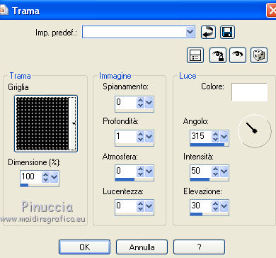 3. Effetti>Effetti di trama>Trama - seleziona la trama Griglia, con i seguenti settaggi.