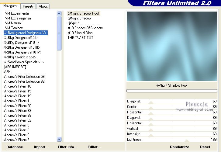 19. Effetti>Plugins>Filters Unlimited - Background Designers IV - Night Shadow Pool con i settaggi standard.