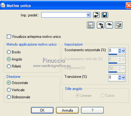 6. Effetti>Effetti di immagine>Motivo unico, con i settaggi standard.