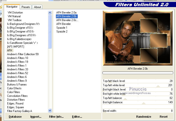 35. Effetti>Plugins>Filters Unlimited - AFH - AFH Beveler 2.0b, con i settaggi standard.