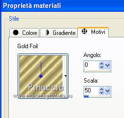 11. Passa il colore di sfondo a Motivi e seleziona un motivo oro con i seguenti settaggi.