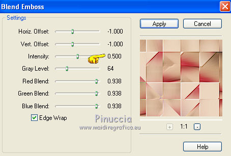 9. Effetti>Plugins>FM Tile Tools - Blend Emboss, con i seguenti settaggi.