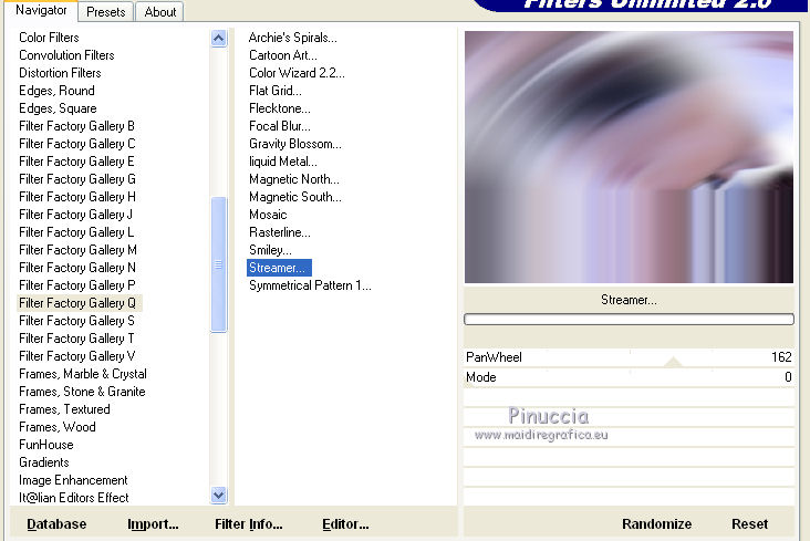 7. Effetti>Plugins>Filter Factory Gallery Q - Streamer, con i settaggi standard.