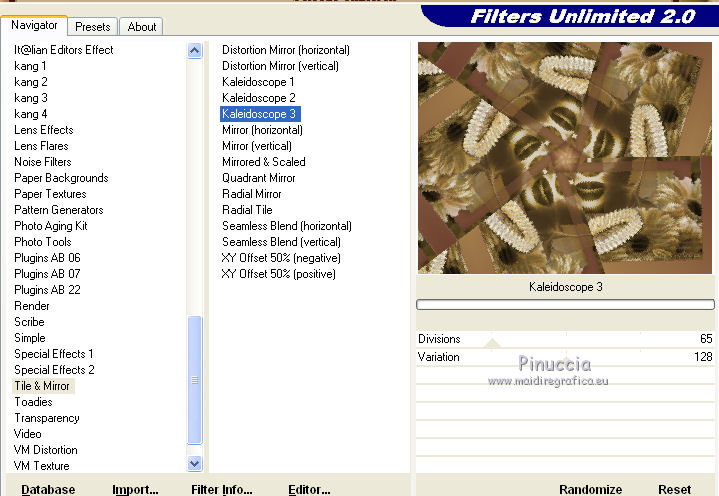 38. Effetti>Plugins>Filters Unlimited 2.0 - Tile and Mirror - Kaleidoscope 3, con i settaggi standard.