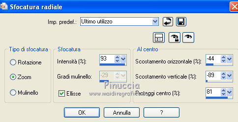 6. Regola>Sfocatura>Sfocatura radiale - 2 volte con i seguenti settaggi.