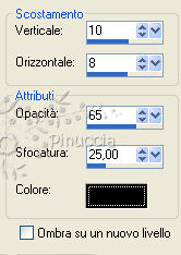 19. Effetti>Effetti 3D>Sfalsa ombra, con i seguenti settaggi, colore nero.