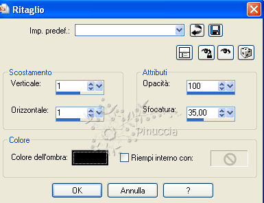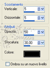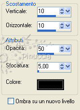 Effetti>Effetti 3D>Sfalsa ombra, con i seguenti settaggi, colore nero.