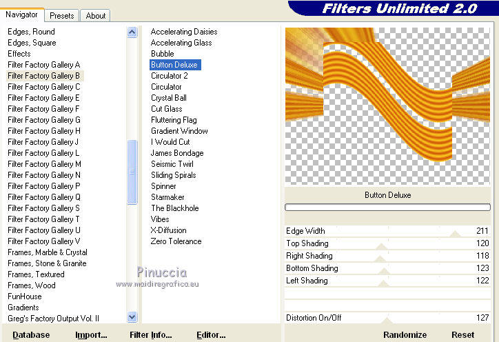 8. Effetti>Plugins>Filters Unlimited - Filter factory gallery B - Button Deluxe, con i settaggi standard.
