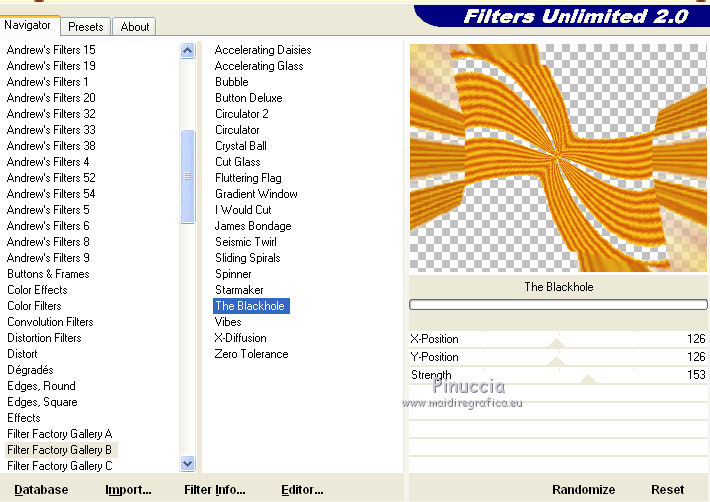10. Effetti>Plugins>Filters Unlimited - Filter Factory Gallery B - The blackhole, con i settaggi standard.