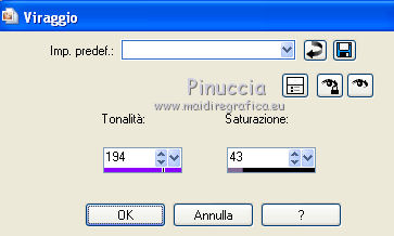 Regola>Tonalità e saturazione>Viraggio, con i settaggi precedenti.