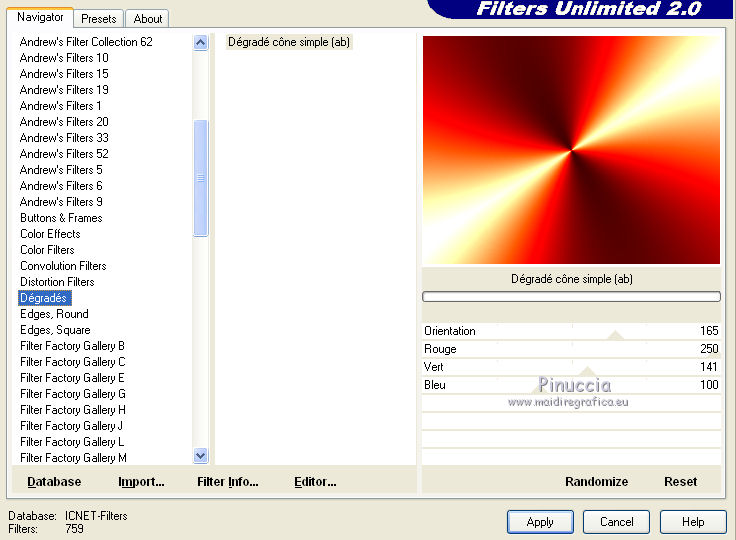 3. Effetti>Plugins>Filters Unlimited 2.0 - Dégradés - Dégradés cône simple(ab).