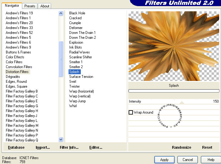 7. Effetti>Plugins>Filters Unlimited 2.0 - Distortion Filters - Splash.